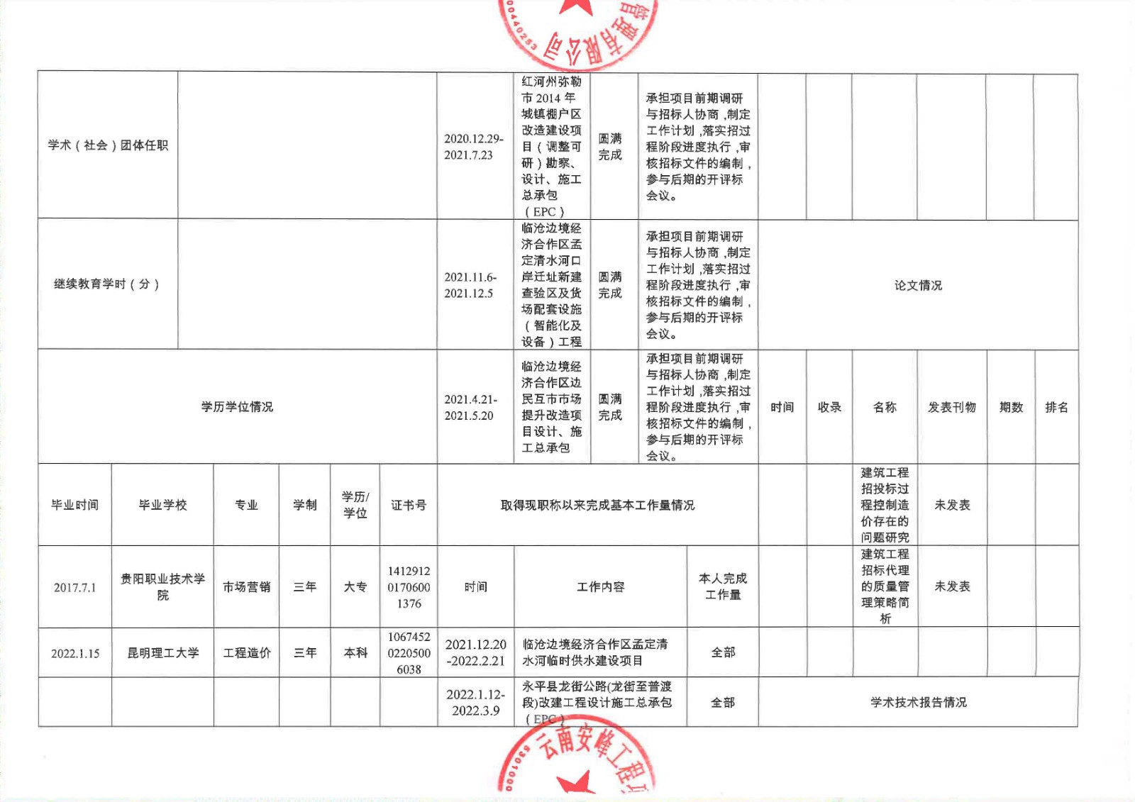關于云南安峰工程項目管理有限公司員工李慶雷申報建筑工程系列(專業(yè))中級職稱情況公示