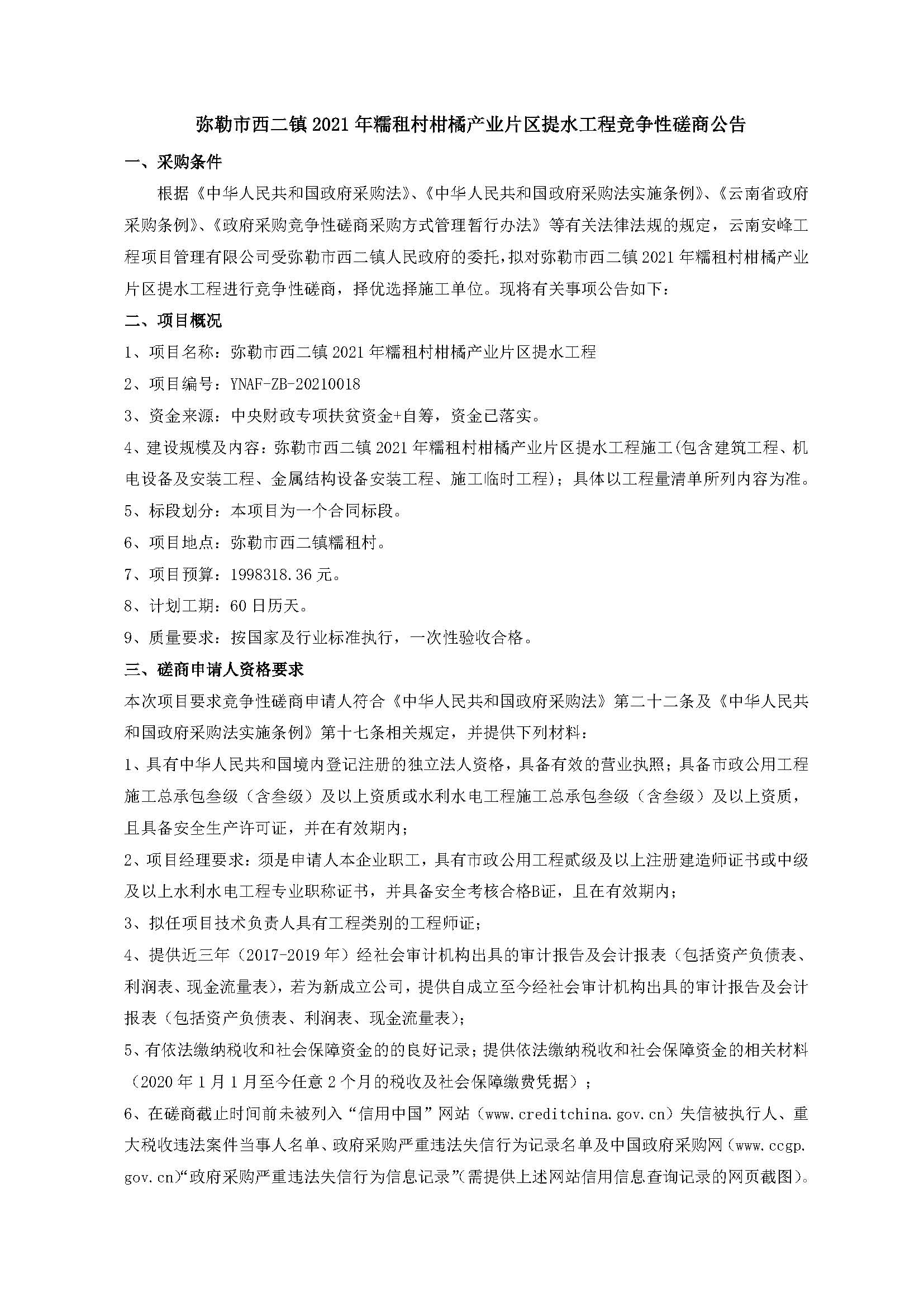 彌勒市西二鎮(zhèn)2021年糯租村柑橘產(chǎn)業(yè)片區(qū)提水工程競爭性磋商公告