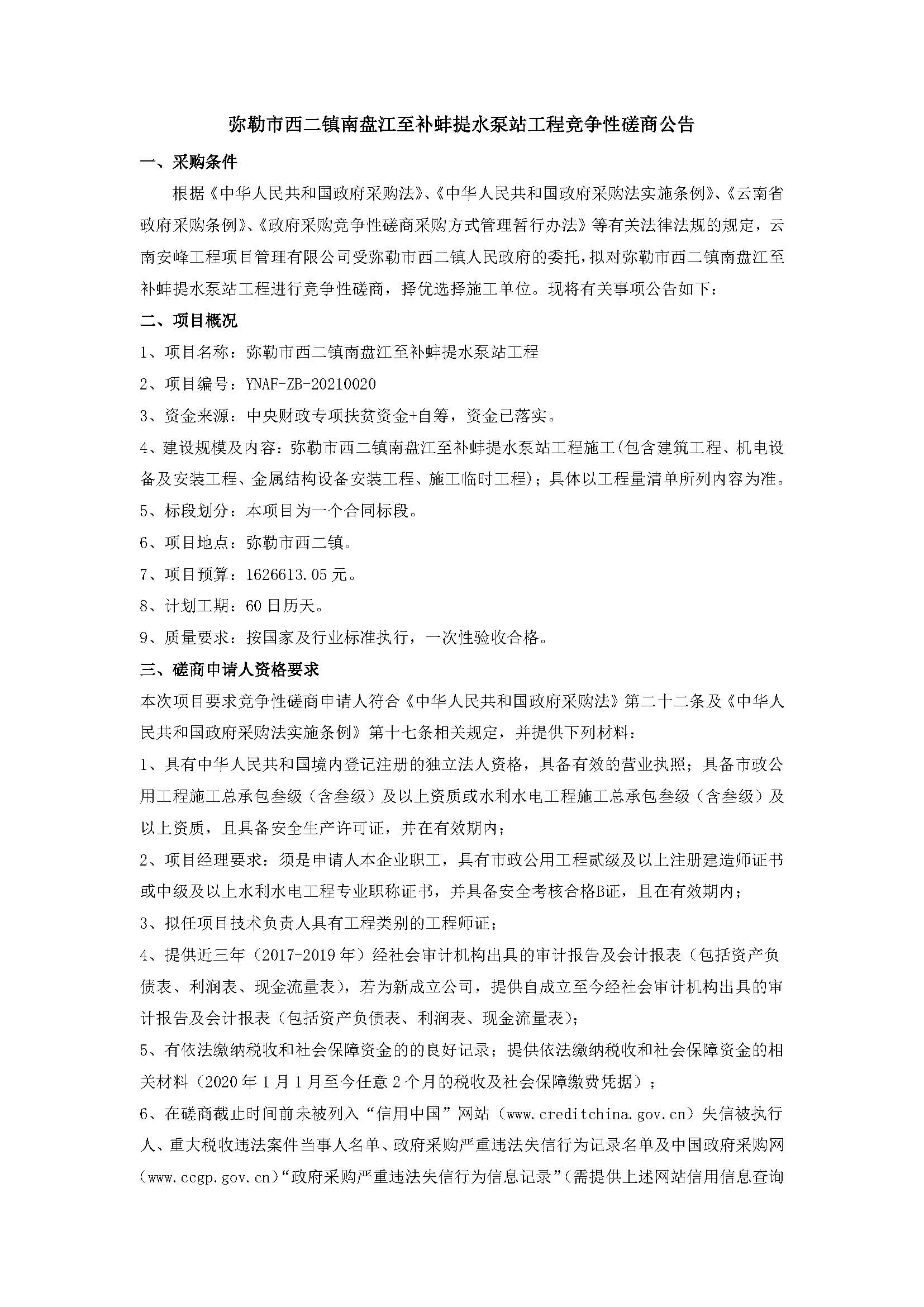 彌勒市西二鎮(zhèn)南盤江至補蚌提水泵站工程競爭性磋商公告