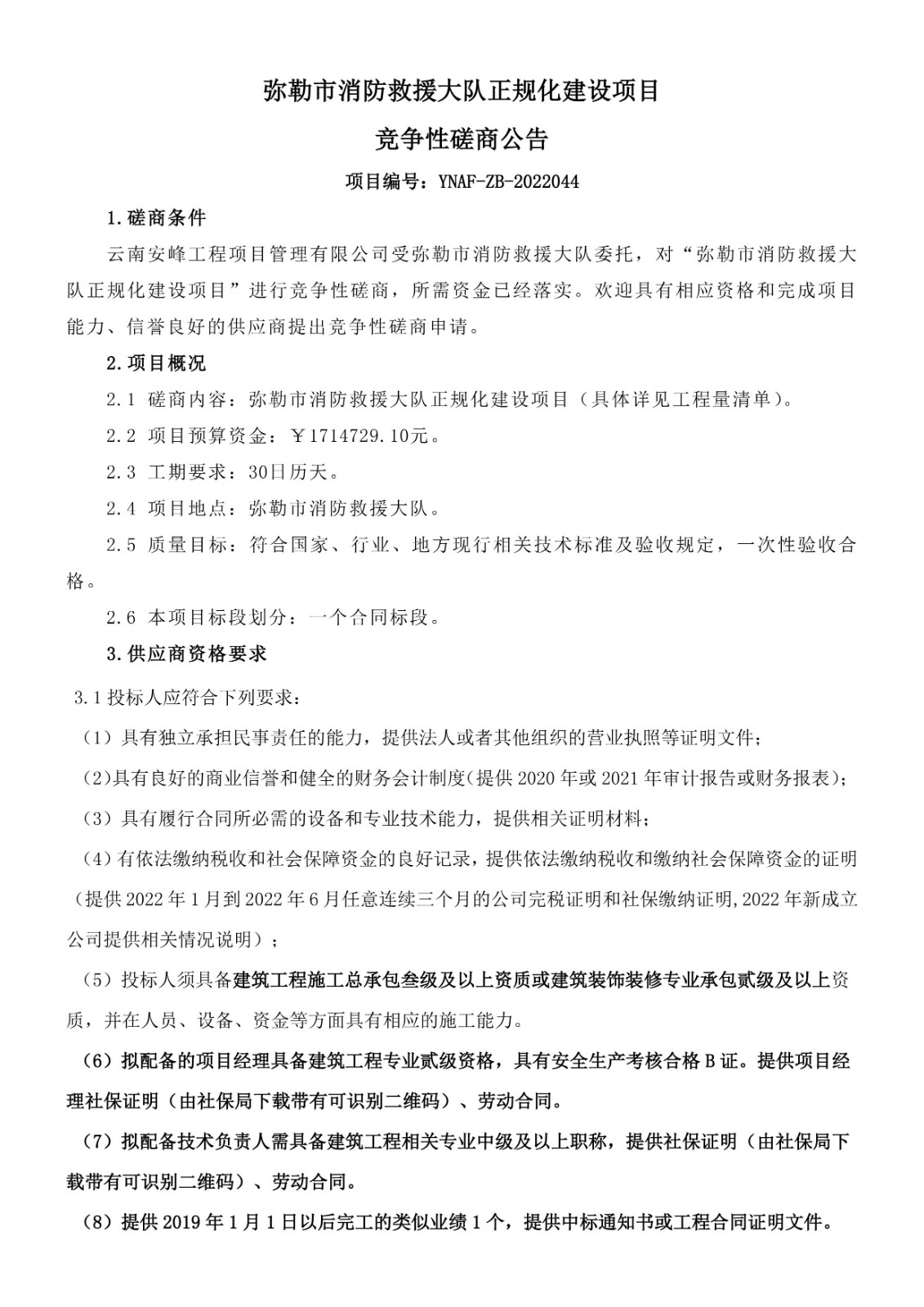 彌勒市消防救援大隊(duì)正規(guī)化建設(shè)項(xiàng)目競爭性磋商公告