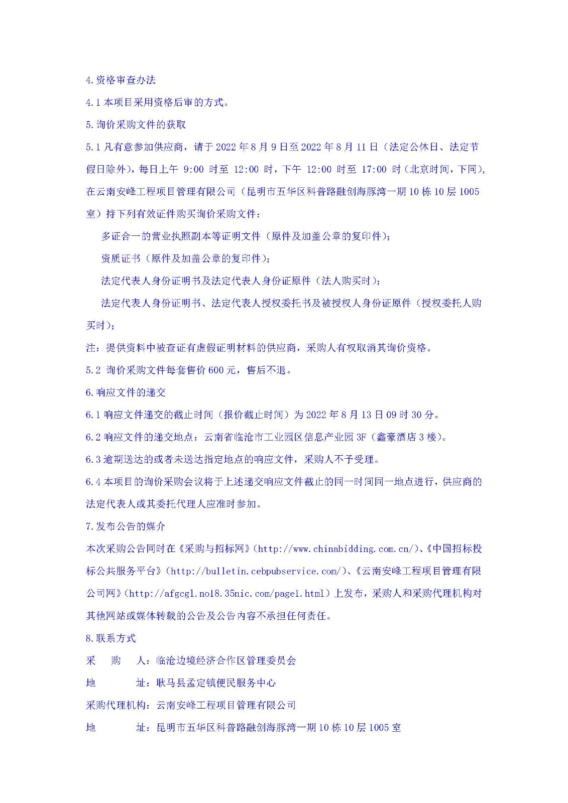 孟定清水河口岸境外(緬甸清水河)消毒區(qū)物資采購項目