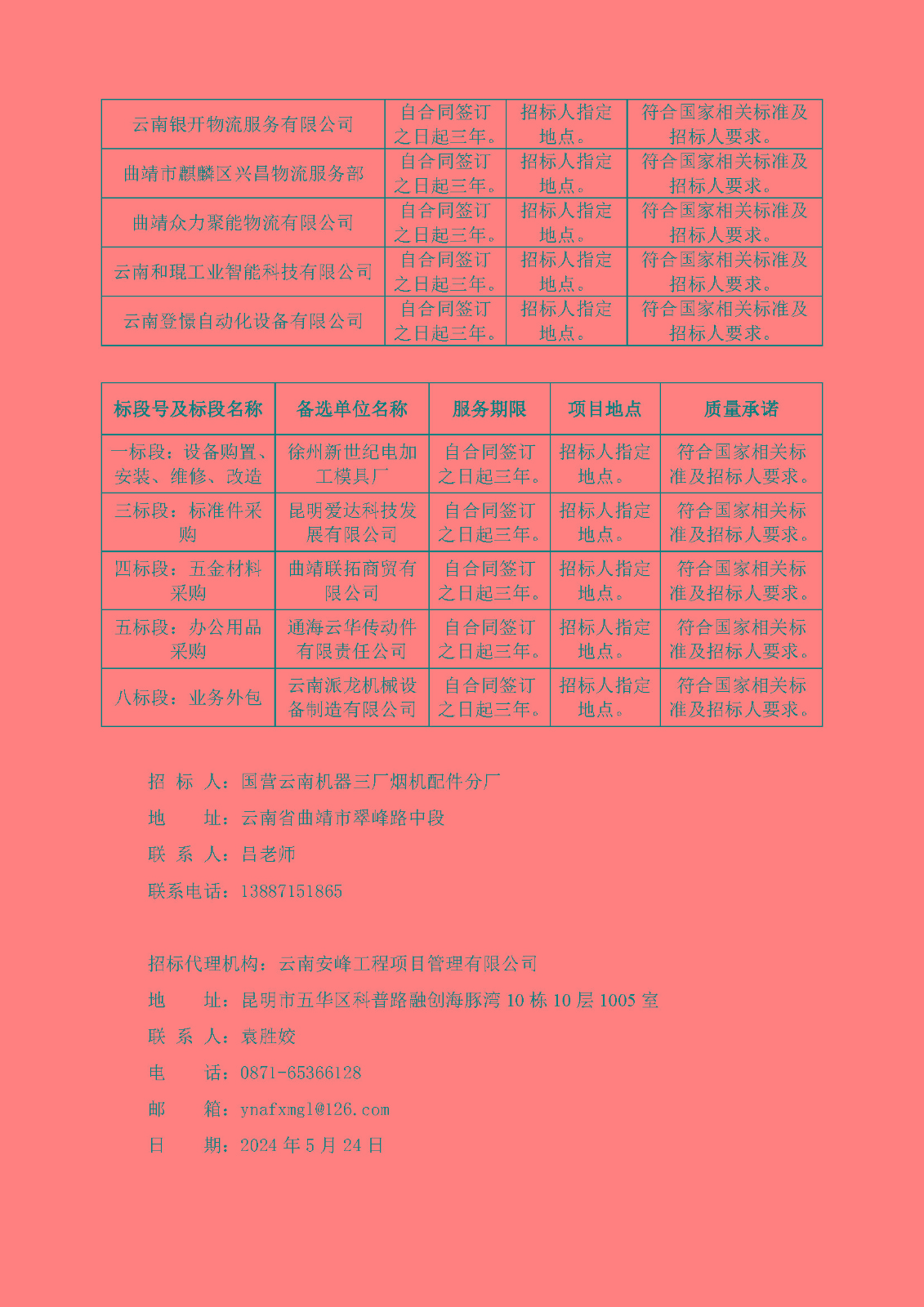 國營(yíng)云南機(jī)器三廠煙機(jī)配件分廠2024-2026年度物資采購、設(shè)備安裝、維修、維護(hù)、改造服務(wù)入圍供應(yīng)商采購入圍結(jié)果公告