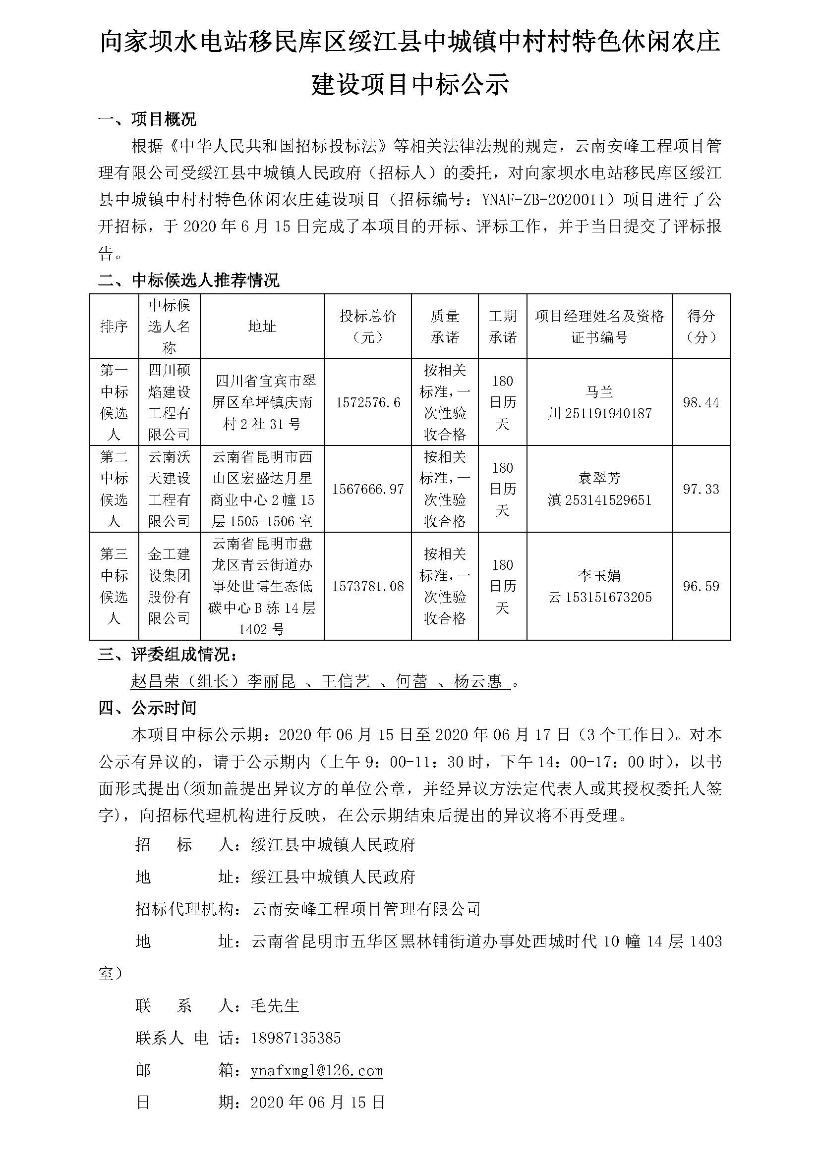 向家壩水電站移民庫(kù)區(qū)綏江縣中城鎮(zhèn)中村村特色休閑農(nóng)莊建設(shè)項(xiàng)目中標(biāo)公示