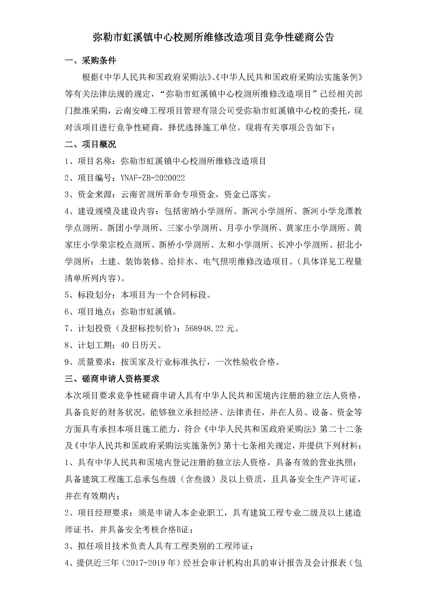 彌勒市虹溪鎮(zhèn)中心校廁所維修改造項目競爭性磋商公告