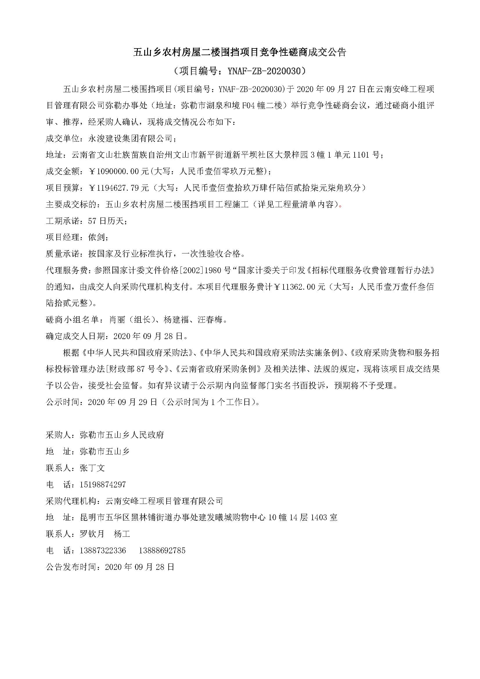 五山鄉(xiāng)農(nóng)村房屋二樓圍擋項(xiàng)目競(jìng)爭(zhēng)性磋商成交公告