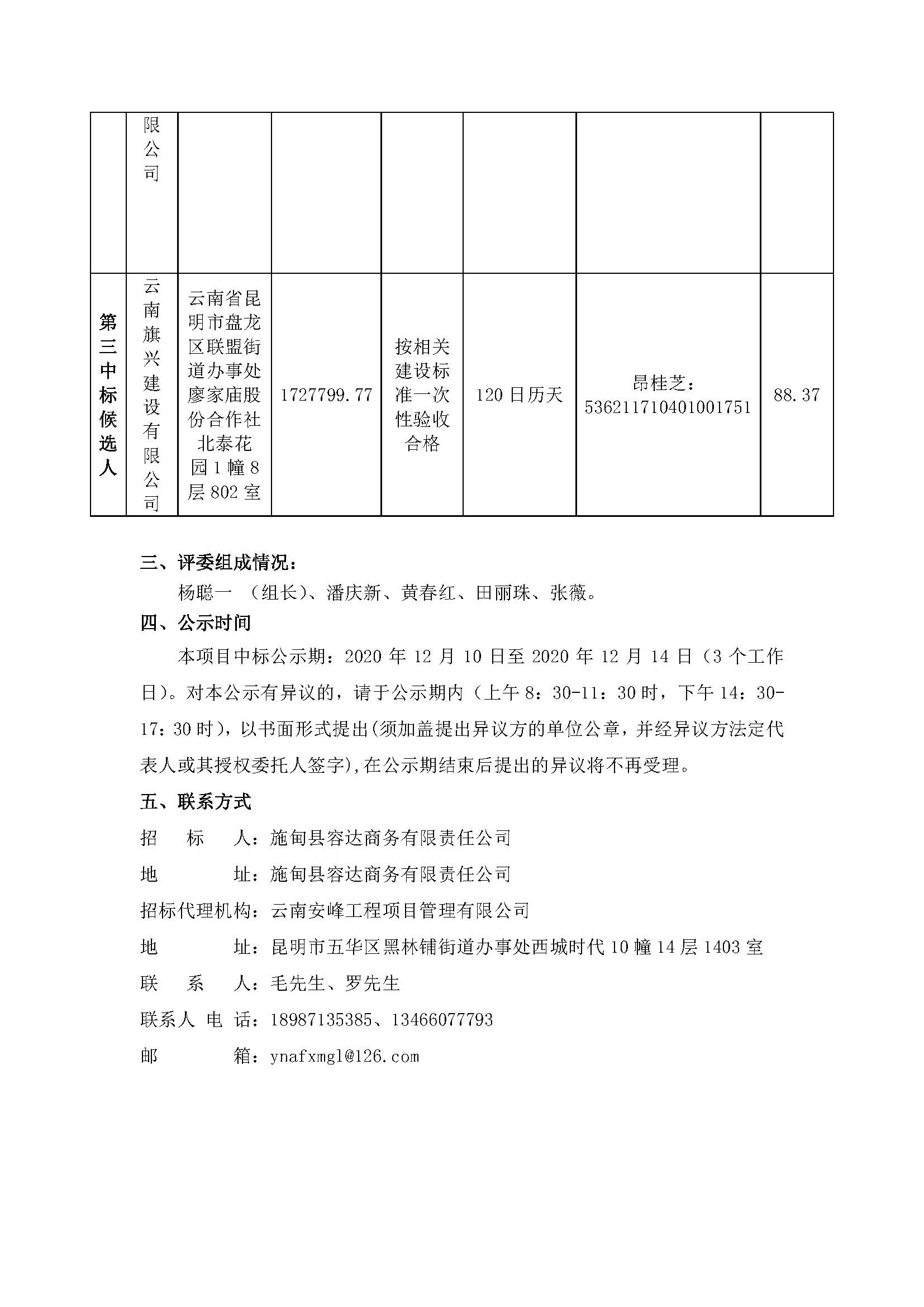 施甸縣容達(dá)商務(wù)有限責(zé)任公司裝修項(xiàng)目 中標(biāo)公示