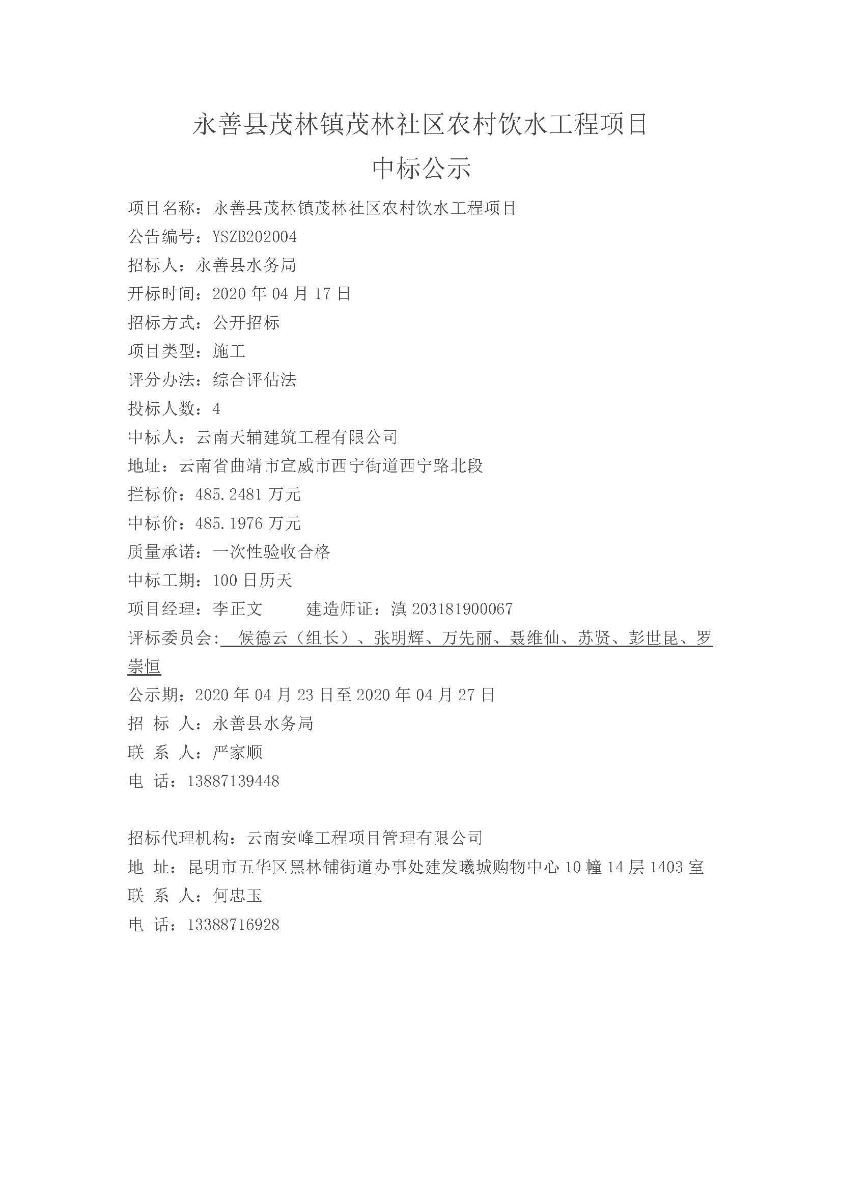永善縣茂林鎮(zhèn)茂林社區(qū)農(nóng)村飲水工程項(xiàng)目