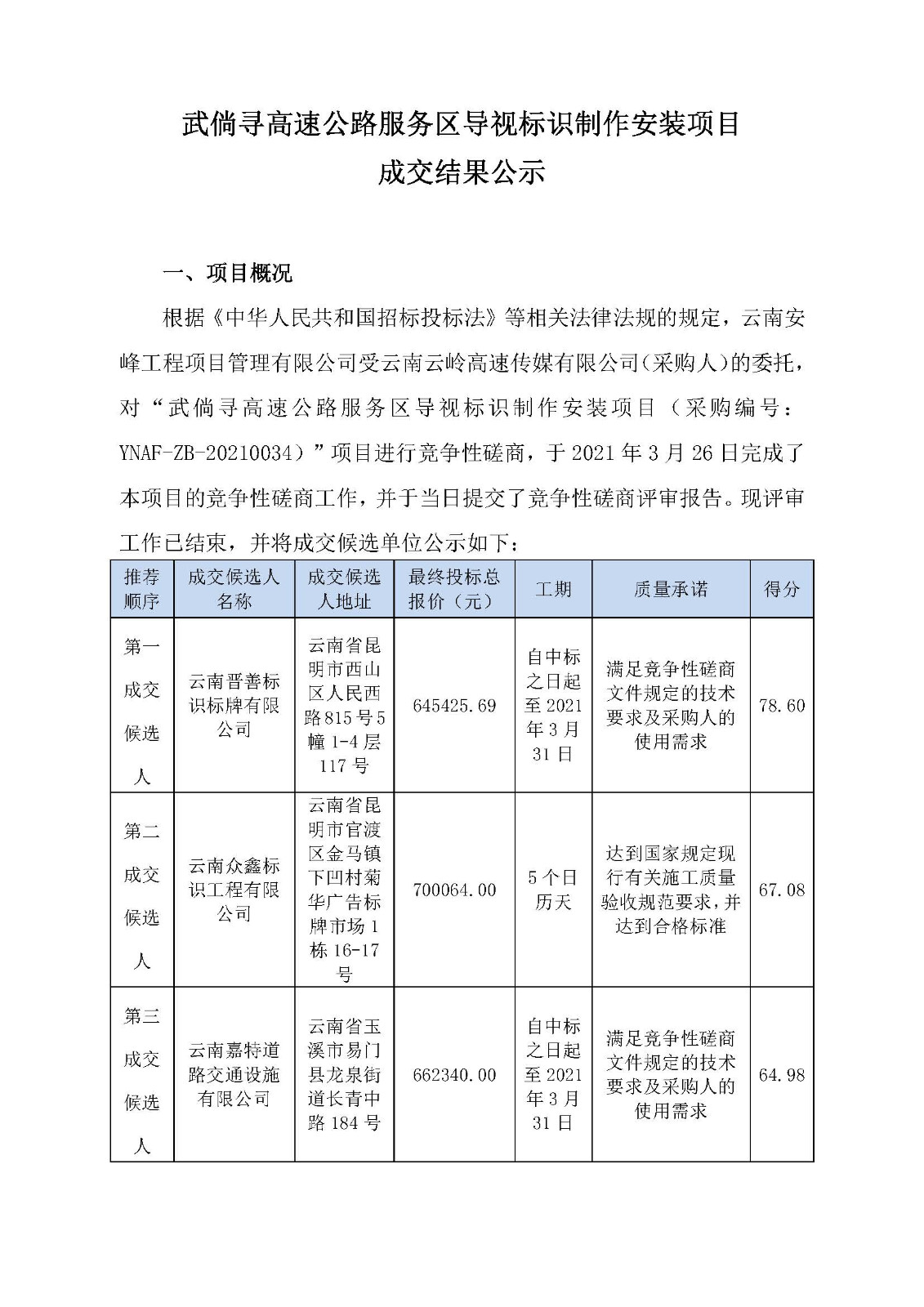 武倘尋高速公路服務(wù)區(qū)導(dǎo)視標(biāo)識(shí)制作安裝項(xiàng)目成交結(jié)果公示