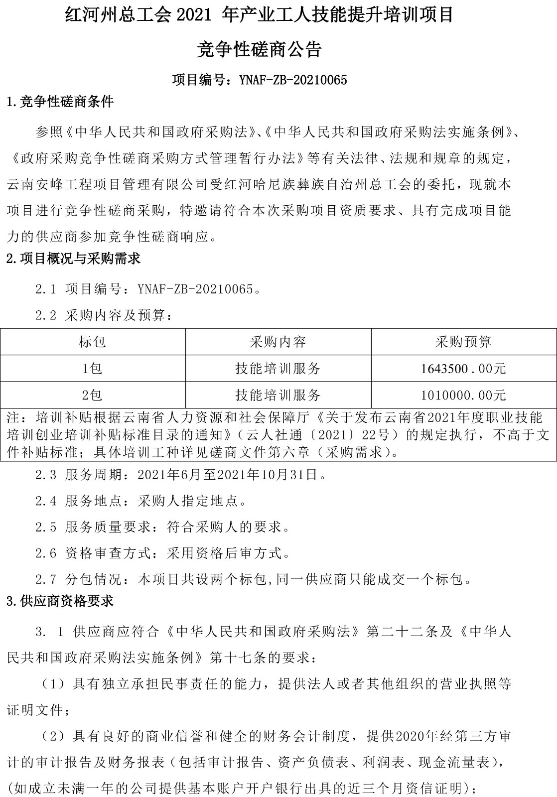 紅河州總工會2021 年產(chǎn)業(yè)工人技能提升培訓(xùn)項目競爭性磋商公告
