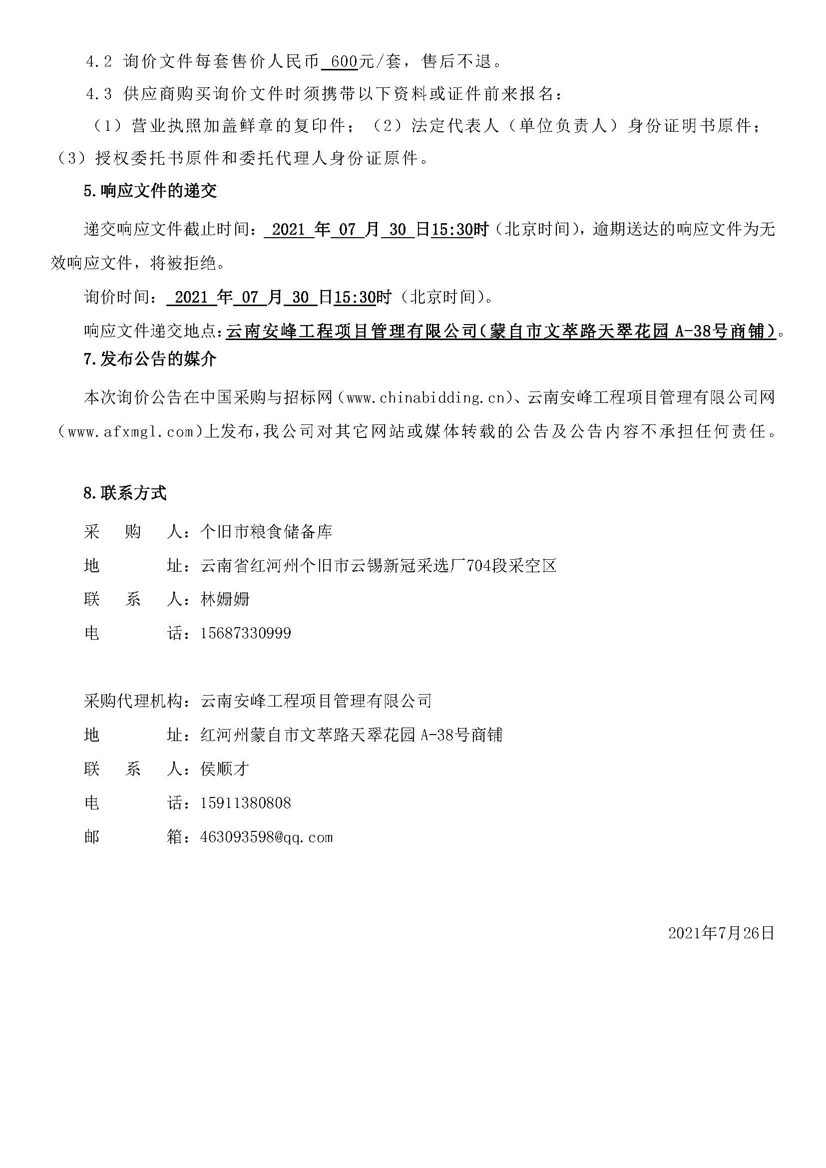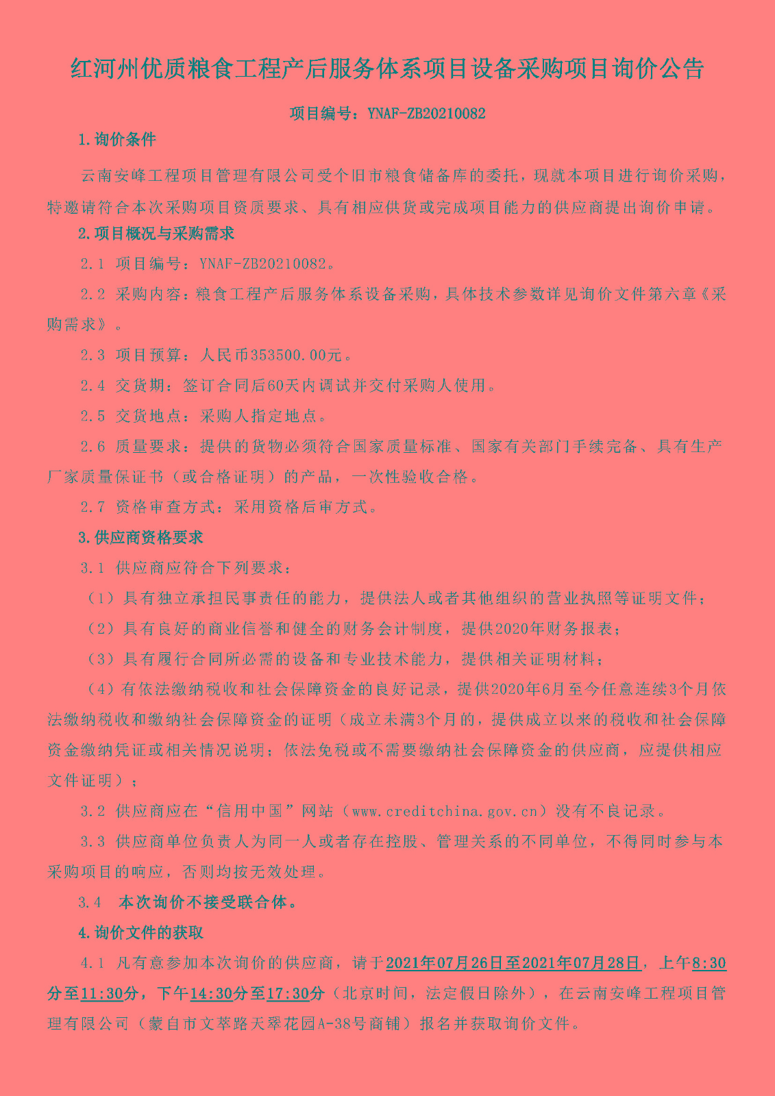 紅河州優(yōu)質(zhì)糧食工程產(chǎn)后服務(wù)體系項(xiàng)目設(shè)備采購項(xiàng)目詢價(jià)公告