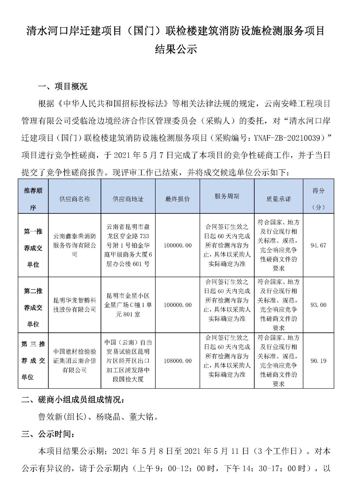 清水河口岸遷建項(xiàng)目(國(guó)門)聯(lián)檢樓建筑消防設(shè)施檢測(cè)服務(wù)項(xiàng)目結(jié)果公示