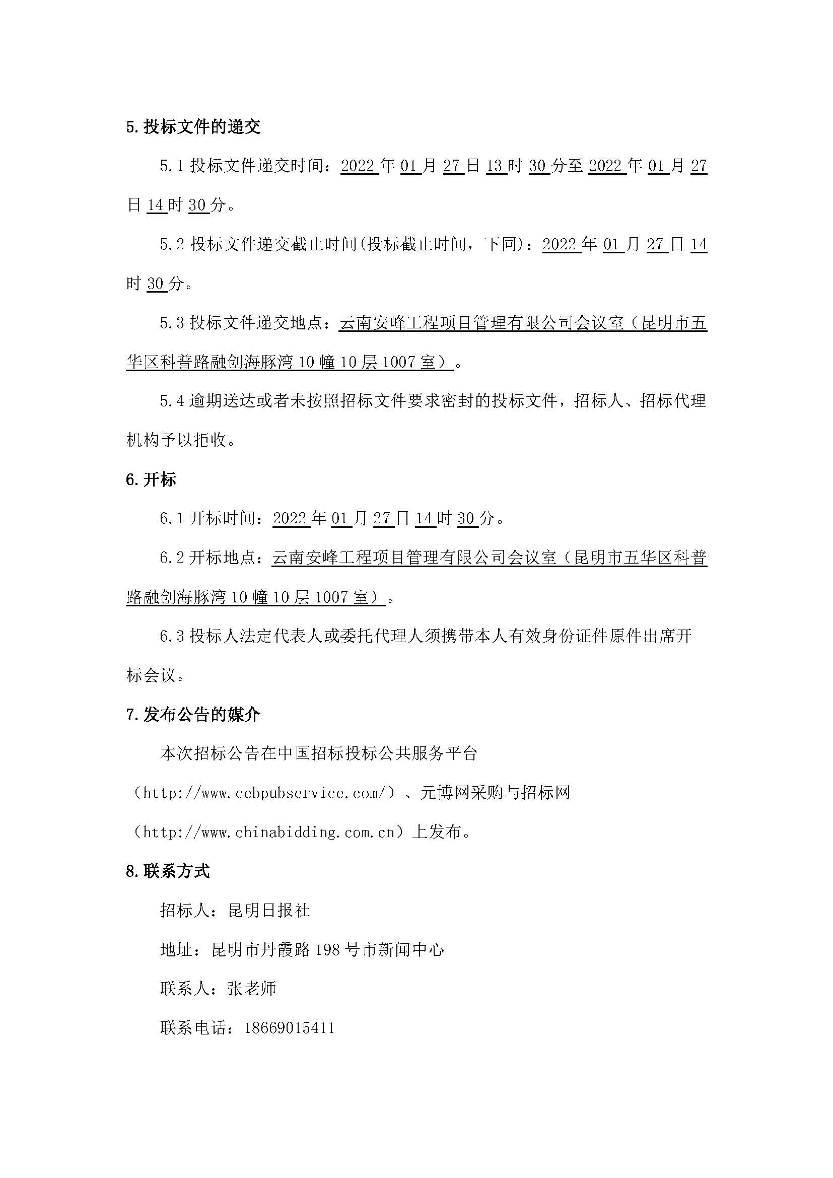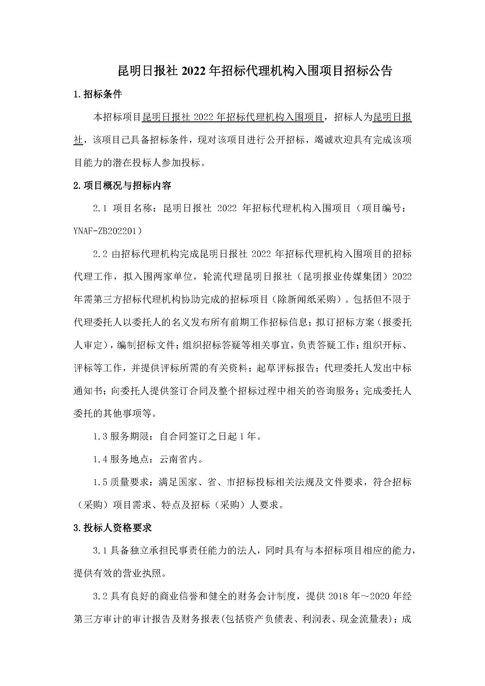 昆明日報社2022年招標代理機構入圍項目招標公告