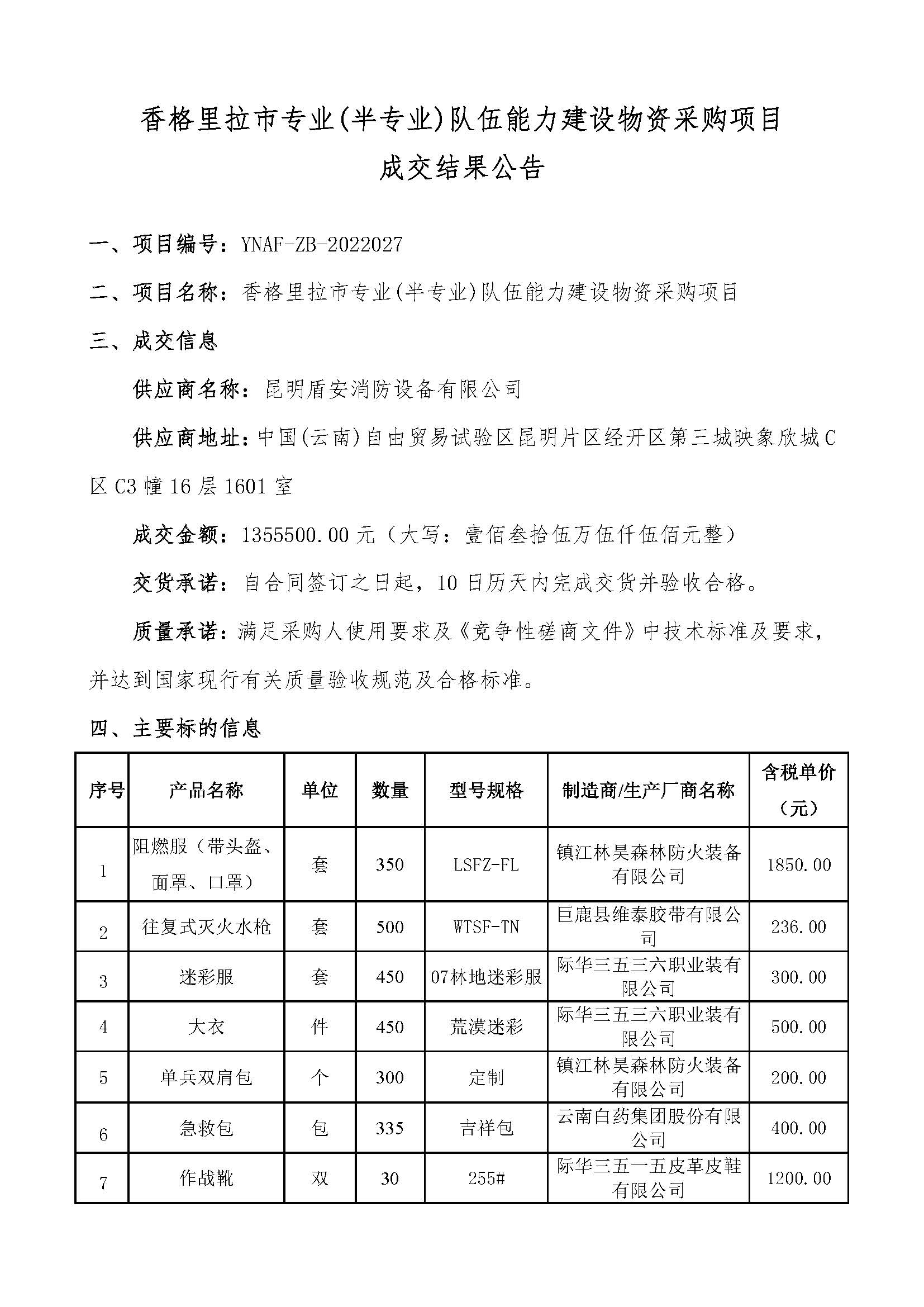 香格里拉市專(zhuān)業(yè)(半專(zhuān)業(yè))隊(duì)伍能力建設(shè)物資采購(gòu)項(xiàng)目成交結(jié)果公告